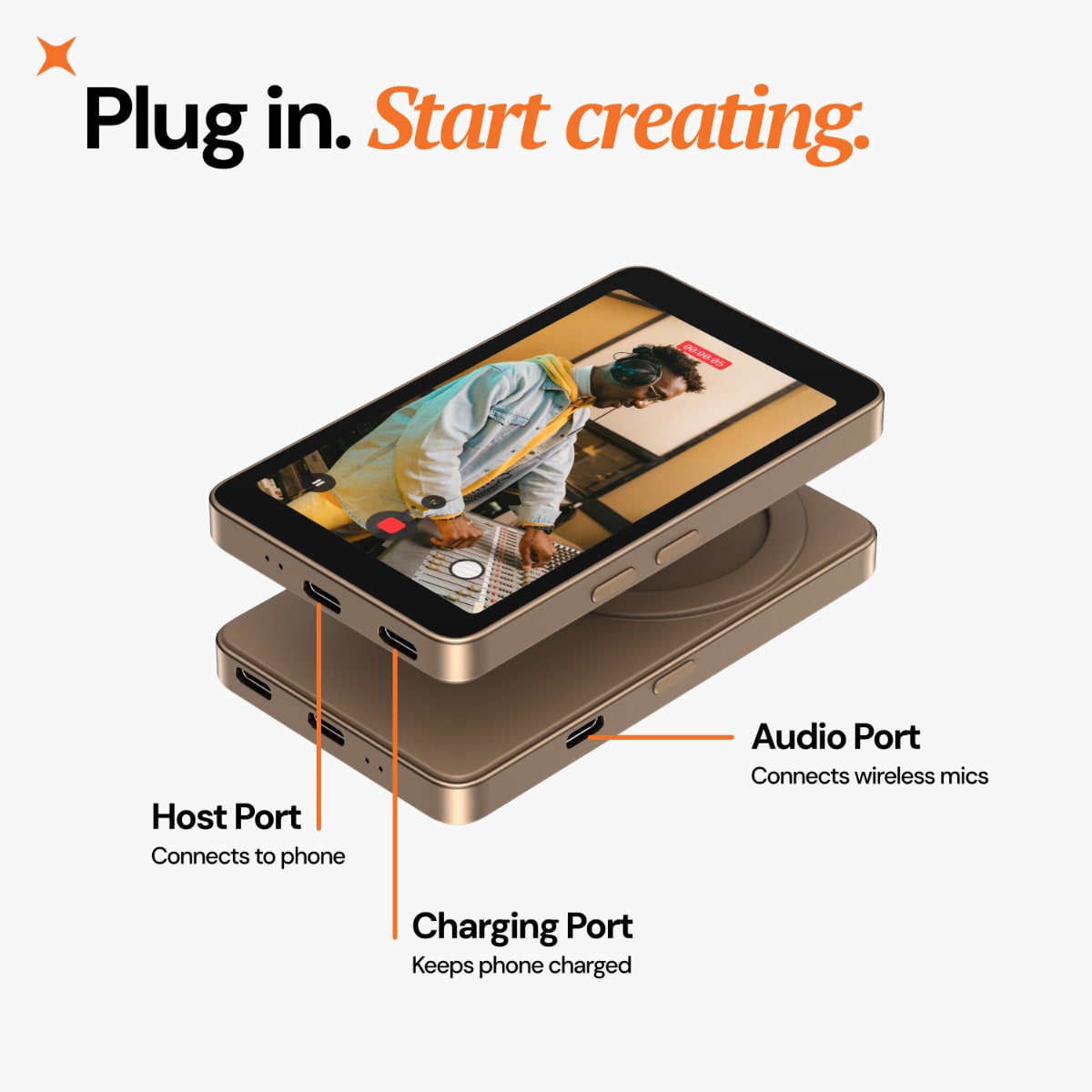 🎬 Ready to film: See exactly what you're recording in real-time on Frame's display. No apps needed, no setup required - just plug in and start creating.
